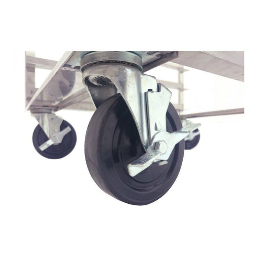Ver todos los detallesFabricado en tubular de Aluminio Guías de Aluminio para 10 charolas de 45 x 65 cm Monta sobre 4 ruedas ahuladas de 3" de diámetro (2 con freno...