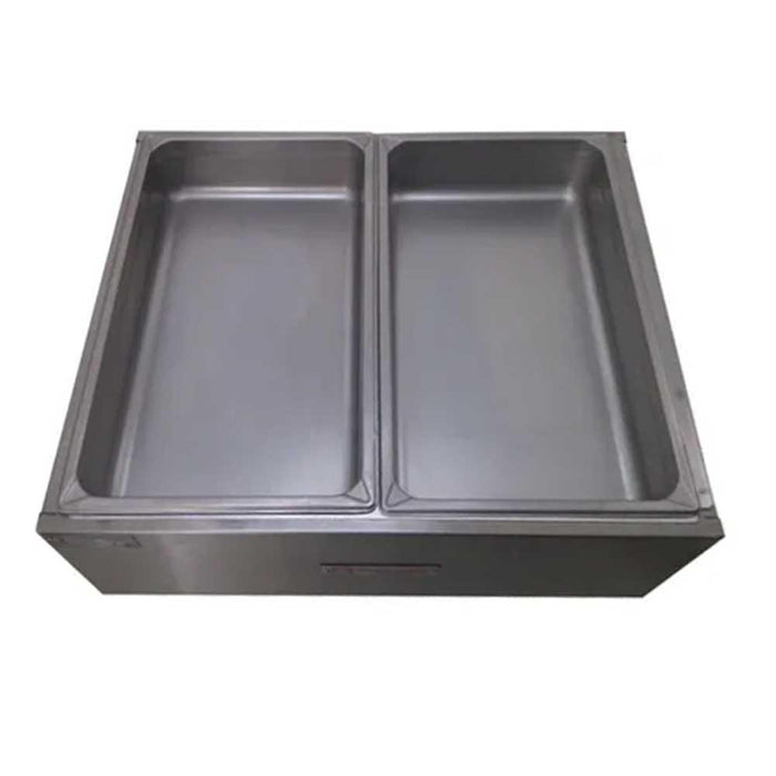 - Incluye 2 recipientes "enteros" de acero inoxidable (33 x 53.5 cm, profundidad 4”) (INAE-4) Tapas no incluidas