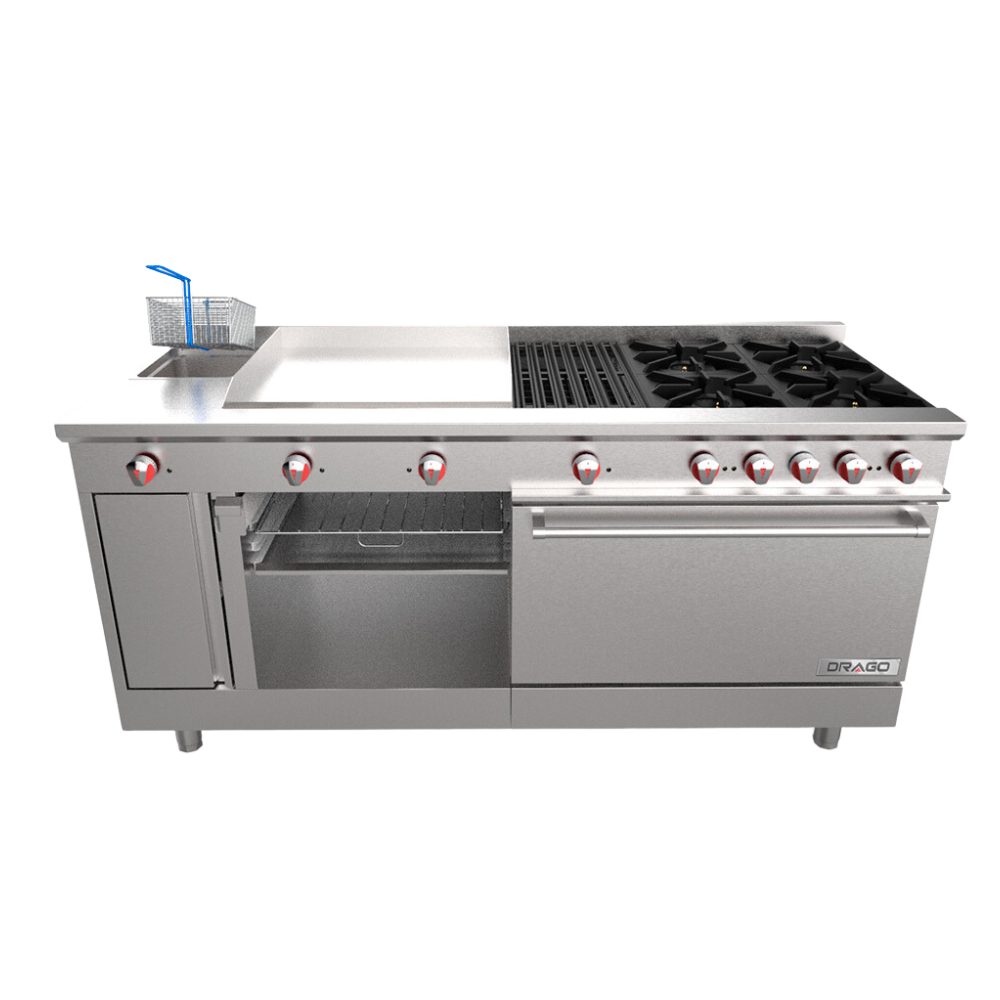 Estufa 4 Quemadores, Horno, Asador de 1 Pie, Plancha de 2 Pies, Freidora y Gratinador Drago UNIVERSAL PD