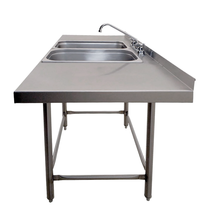 - 2 Tarjas fabricadas con Acero Inoxidable Cal. 24 (53.3 x 33 x 20.3 cm).