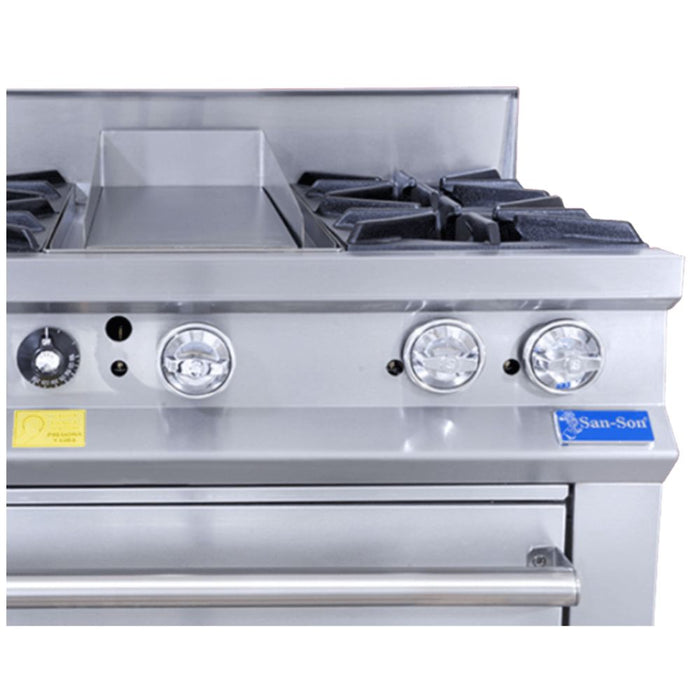 Estufa a Gas 4 Quemadores, Plancha, Horno San-Son SSE4QP